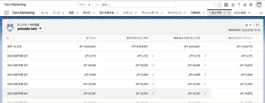 Salesforceには標準機能で売上予測が用意されています。